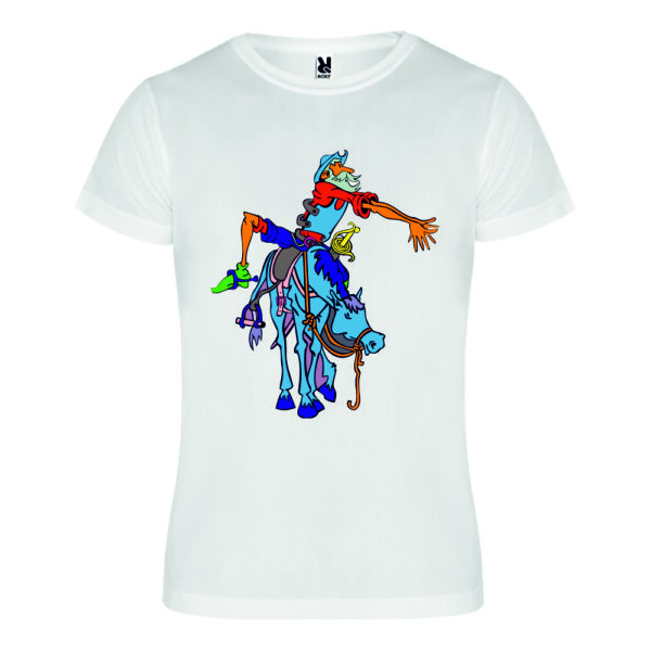 Camiseta técnica blanca de poliéster impresa mediante sublimación.